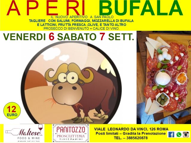 Iniziamo con Aperibufala e vi ricordiamo che siamo aperti pranzo e cena per panini, taglieri, aperitivi, vino e tanto altro...